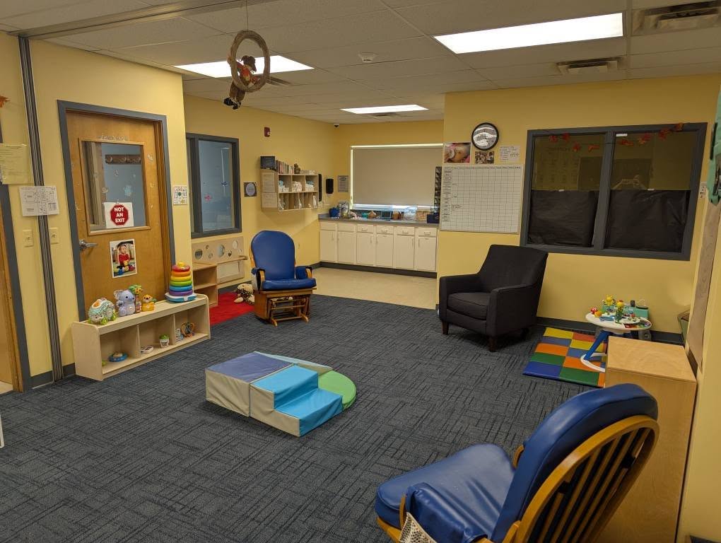 For those over 12 months of age, caregivers will help children to learn habits and skills they will need for the toddler room. They will be introduced to "big kid" chairs, sitting at a table, and eating with spoons. Around 15 months, children will move to the Toddler room, and having these skills under their belts will make it a lot easier.
