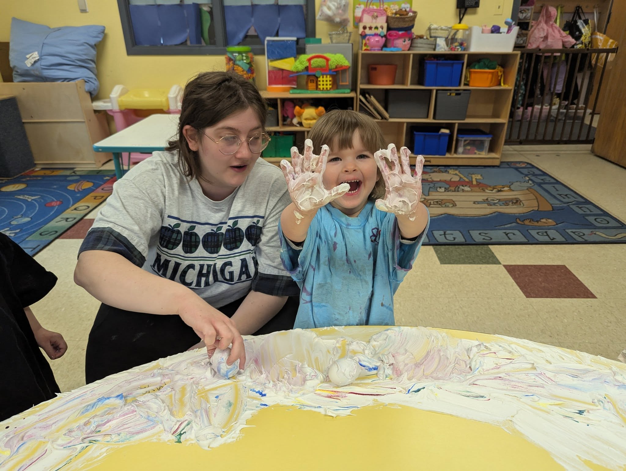 Hands-on learning is still the key to this program! Children are 'learning to learn,' and are doing so largely through their senses. Sensory exploration will be a part of several art, math and science experiences. Children in this program will have circle time each day. They will be developing language and learning to express themselves! Children this age are learning to talk about what is happening around them. They are trying to make sense of their world and figure out how it all works together. We will provide lots of experiences for them that will help them sort this out!